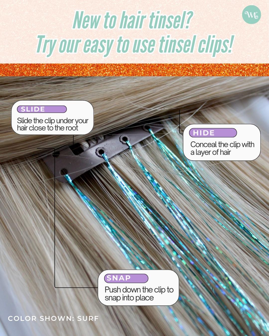 Step into your Showgirl Spotlight with salon-quality, heat-resistant tinsel hair. Our glittery mint green fairy hair strands are the ultimate stage-ready sparkle — perfect for movie premiers, launch parties, album releases & concerts! WildMane™ makes it easy to transform your everyday look into a head-turning moment.